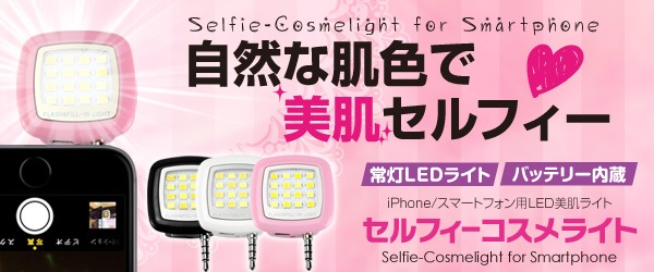 <暗い場所でも明るくキレイに美肌セルフィーが撮れる、LEDコスメライト>